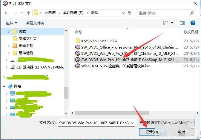 2、在“打開ISO文件”窗口,根據自己的保存路徑選擇已經準備好的win7系統鏡像文件。