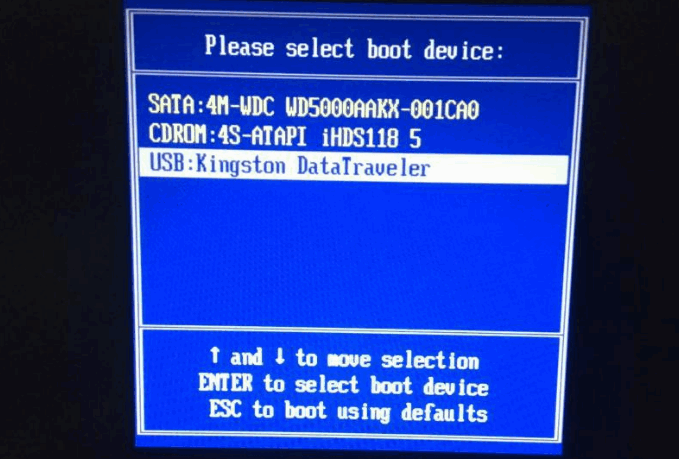 4、插入u盤啟動盤進電腦中,開機不斷按啟動熱鍵進啟動界面,選擇u盤啟動項回車確定進入到pe選擇界面,選擇第一項pe系統回車進入。在pe內就可以打開小白裝機工具對系統進行安裝啦。