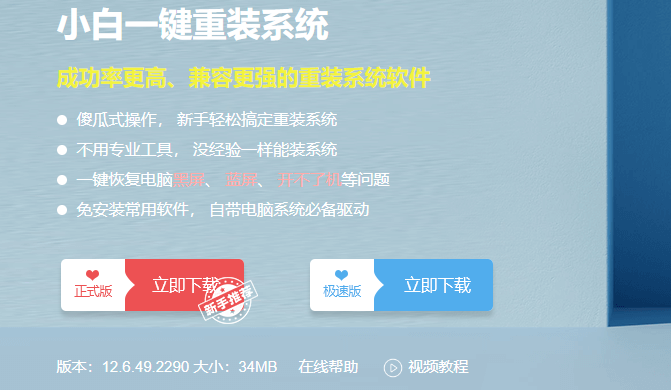 1、首先打開百度搜索,查找小白一鍵重裝系統軟件,該工具不僅能在線一鍵重裝系統,還能快速制作u盤啟動盤重裝系統,非常適合電腦新手使用。