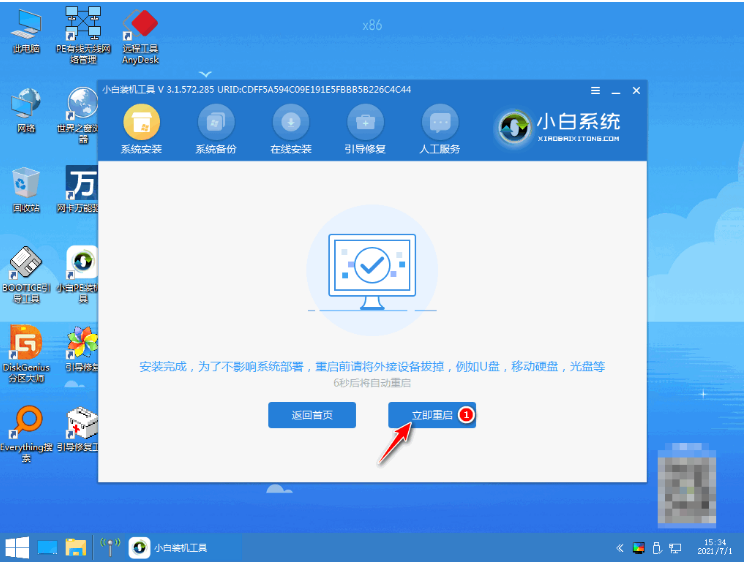 7、系統安裝完成后,點擊立即重啟電腦;
