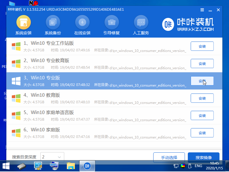 接著在pe桌面上打開咔咔裝機工具,選擇win10系統安裝到系統盤上,一般默認是c盤。