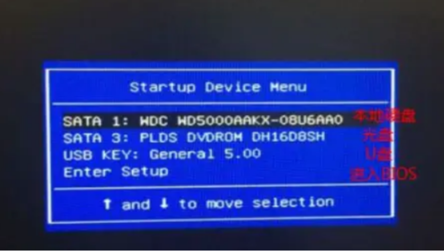 3、在啟動項選擇菜單界面下,選擇usb項。
