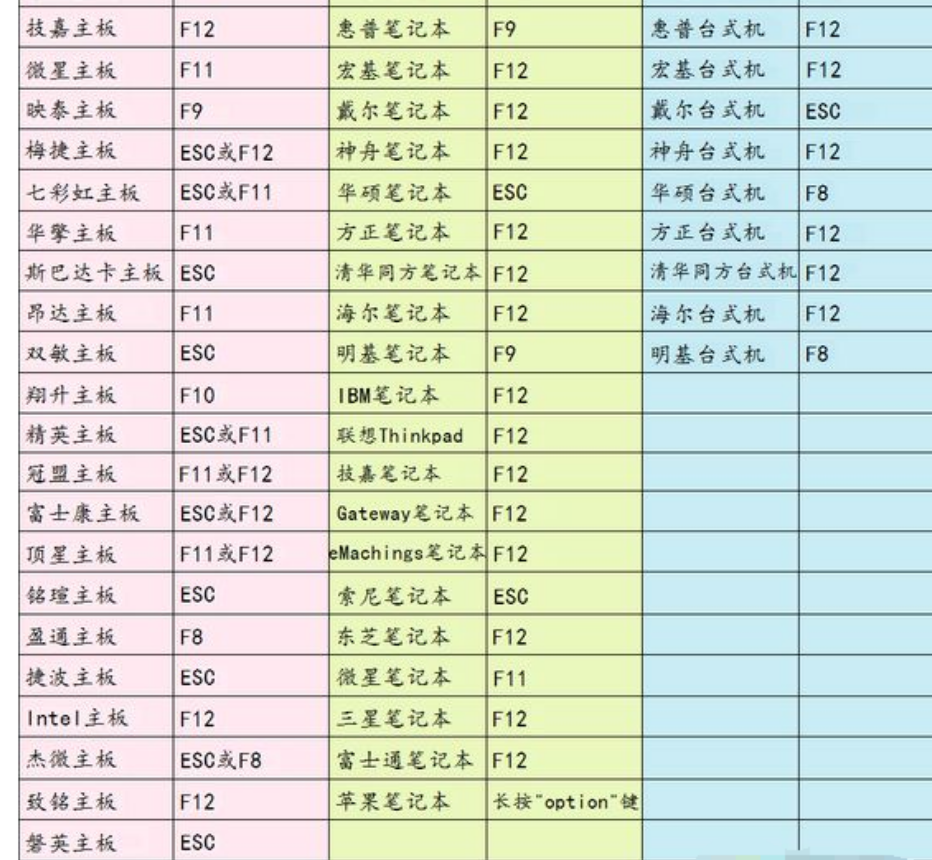 1、不同的電腦品牌主板進啟動項的快捷鍵也不一樣。下面是比較常用的一些電腦品牌主板進啟動項的快捷鍵匯總圖。