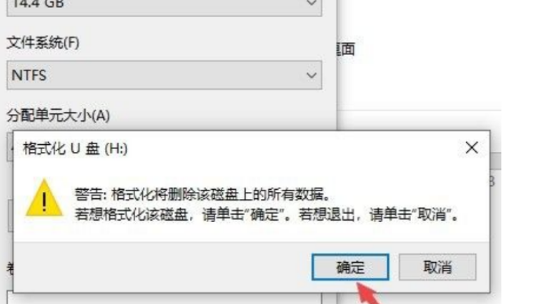 6.隨后點擊確定,我們在制做啟動盤以前,務必開展格式化,不然也會發生沒法引導的狀況。