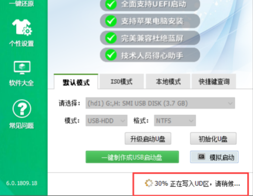 3.點擊USB-HDD,選擇NTFS,勾選一鍵制作USB啟動盤。