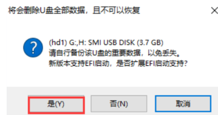 4.點擊一鍵制作,【U盤數據刪除且不可恢復】的窗口,選擇【是】。