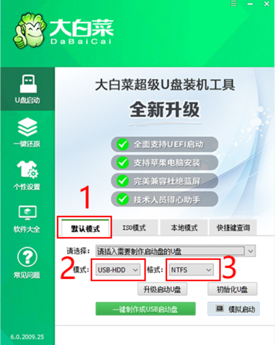 軟件版本:大白菜U盤啟動工具v6.0