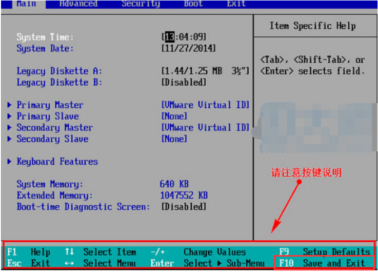 1.進入bios頁面設置,需要記住底部快捷鍵操作。