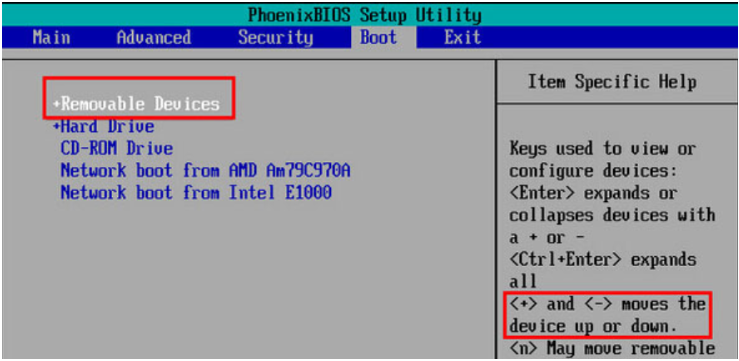 3.將“removeble device”移動至最上方,通過按“+鍵”實現向上移動。