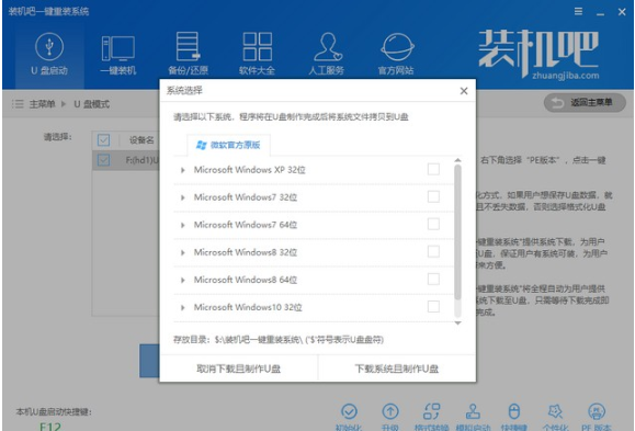5、如果沒有下載系統鏡像的話直接在此界面選擇即可,裝機吧支持x86-64系統下載,點擊下載系統且制作U盤。