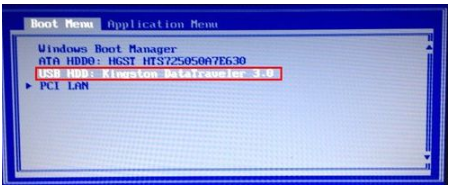 7、將制作好的U盤啟動盤插入要重裝系統的電腦里,按開機鍵,立即不停的按之前查詢的u盤啟動熱鍵,出現的boot選擇頁面是選擇U盤選項,回車。