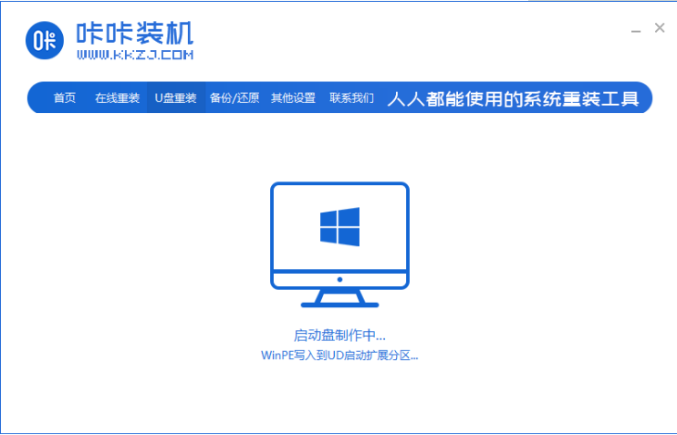 1、下載安裝咔咔裝機軟件并打開,選擇U盤重裝系統。