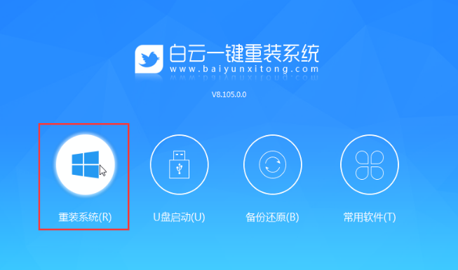 13、打開白云一鍵重裝系統工具,選擇重裝系統;