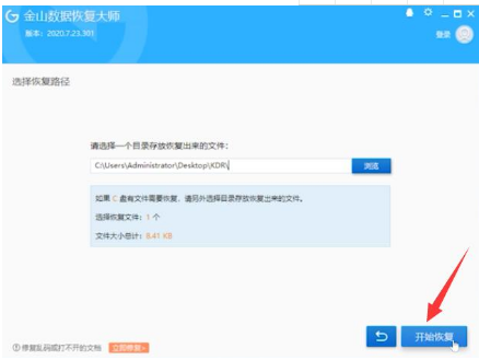 3. 然后設置恢復路徑,選擇開始恢復,請大家耐心等待數據恢復。
