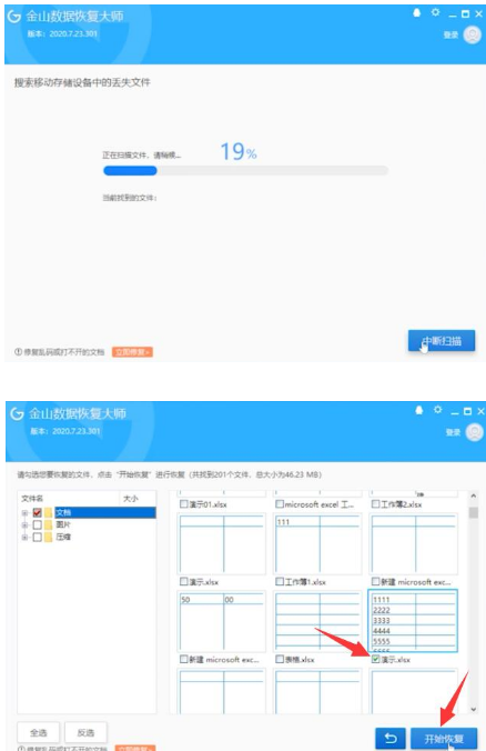 2. 掃描完成之后,選擇恢復的數據類型,勾選我們自己需要恢復的文件,選擇開始恢復。