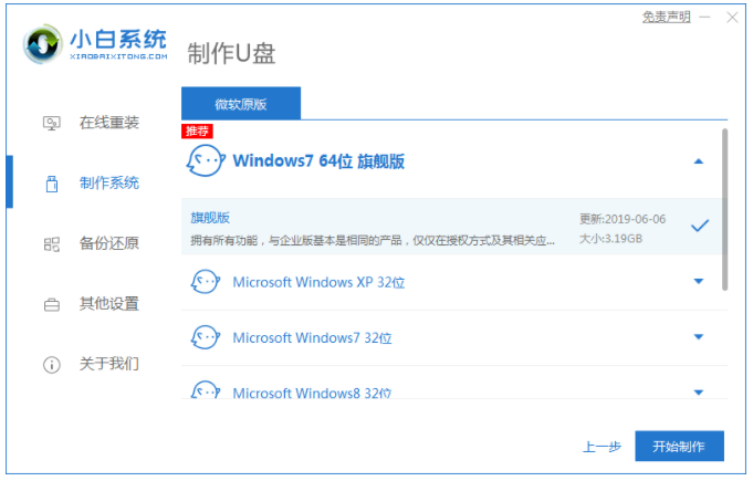 3、選擇需要安裝的系統版本,點擊開始制作。