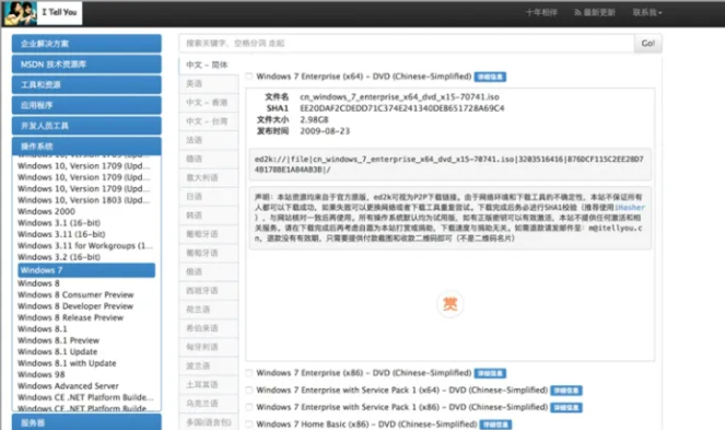 2.點擊“操作系統”,里面有各種版本的操作系統,找到我們需要的系統,點擊它,在右側找到你所需的系統版本,點擊“詳細信息”,復制ed2k鏈接,可以使用迅雷等工具下載