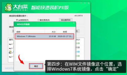 10.在彈出的WIM文件鏡像這個位置,選擇windows7系統鏡像,點擊“確定”。