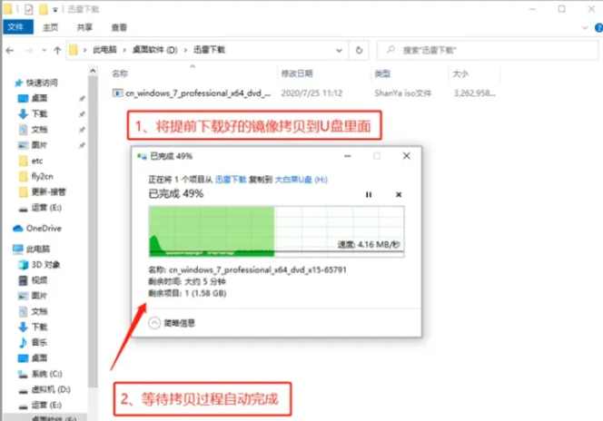 3、下載完成后,找到下載好的WIN7 ISO/GHO鏡像拷貝到U盤目錄,如果文件比較大的話,我們耐心等待就可以了。