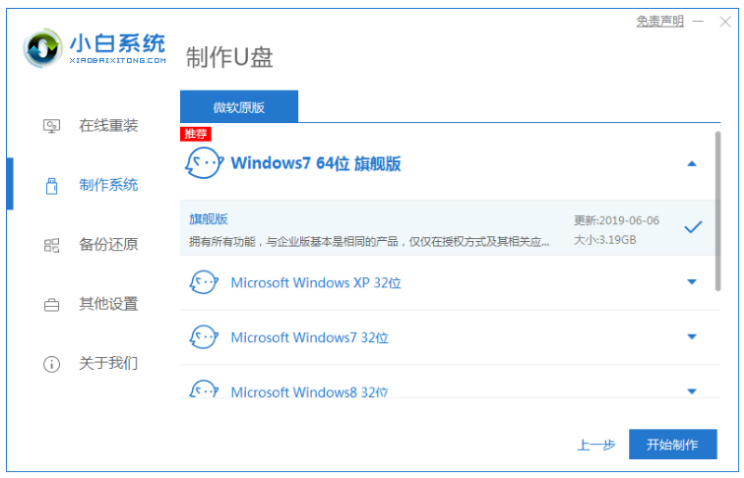 2、選擇我們需要安裝的win7系統,點擊開始制作。