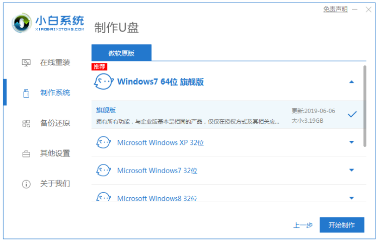 2、選擇需要安裝的win7系統,點擊開始制作。