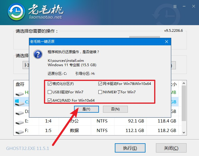 在老毛桃桌面中,打開老毛桃PE裝機工具,選擇win11系統,選擇C盤,點擊下方“執行”。