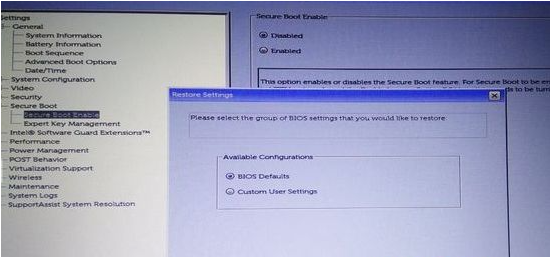 5、如果設置錯誤的話,點擊restore settings,選擇bios default(bios的默認值)。
