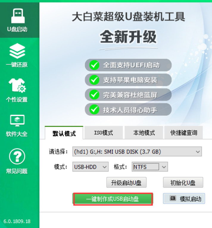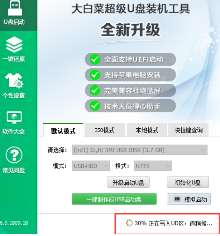 軟件版本:大白菜超級u盤啟動盤制作工具 6.0