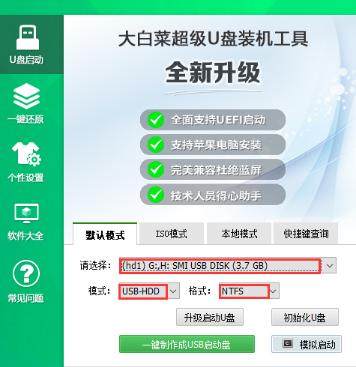 通過大白菜超級u盤啟動盤制作工具 完成:
