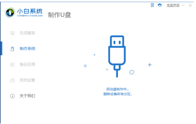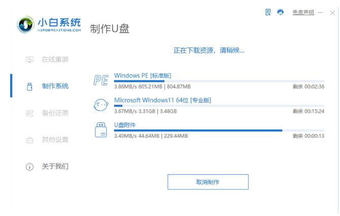 3..等待下載小白pe系統和系統鏡像等文件,等待制作U盤,系統進行分區設置。