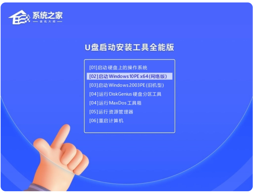 2、進入選擇界面,咱們選擇[02]啟動Windows10PE網絡版,這樣就可以進入一個很像Win10桌面的PE系統。