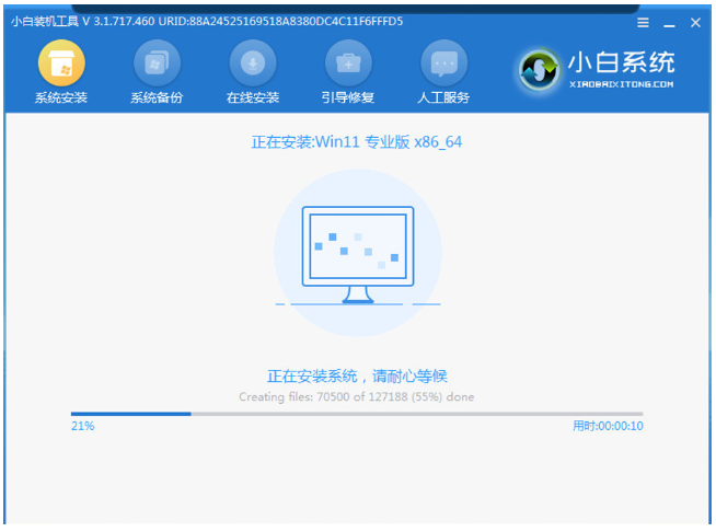 8.進入pe系統后,打開小白安裝工具選擇要安裝的系統版本,點擊安裝,等待系統安裝。