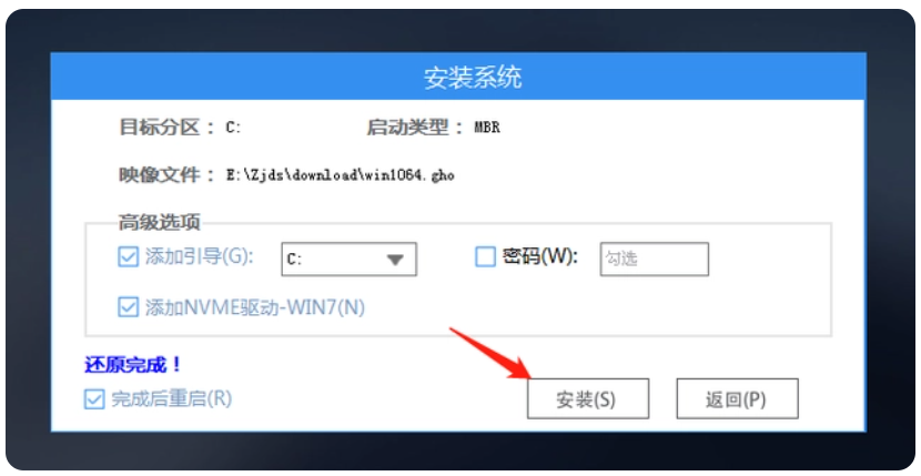 7、備份還原完成后,拔掉U盤重啟電腦,系統就會自動進入系統安裝界面。