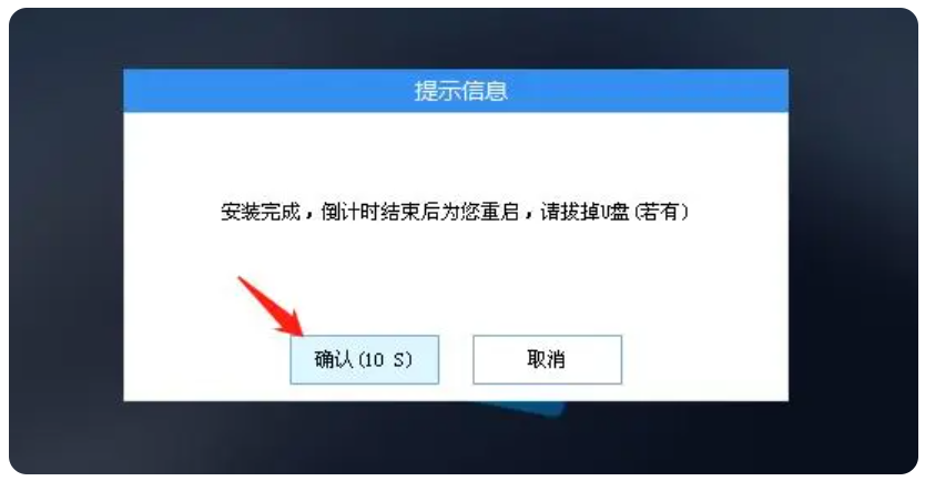 9.系統安裝完成后將U盤拔出,重新啟動電腦。