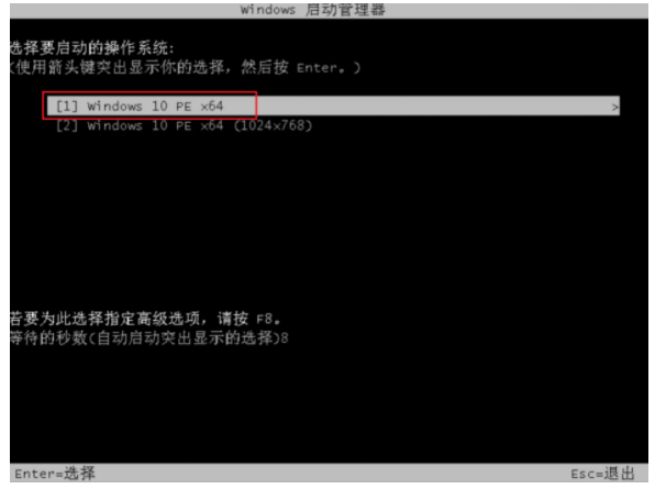6、進入系統引導選項界面后選擇Windows 10 PE進入系統。