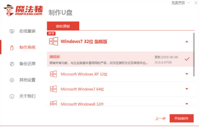 1、打開軟件選擇制作系統,然后點擊制作U盤,系統會自動給出適合安裝的版本,我們點擊開始制作就好了。
