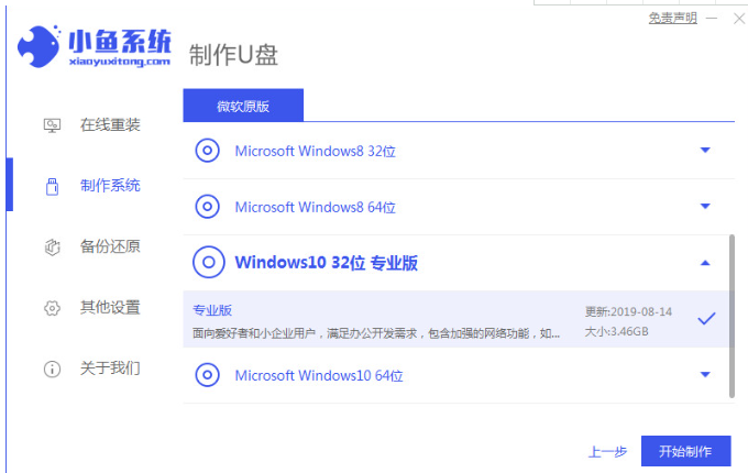 2、在制作系統界面選擇需要安裝的win10系統,點擊開始制作win10 u盤啟動盤。