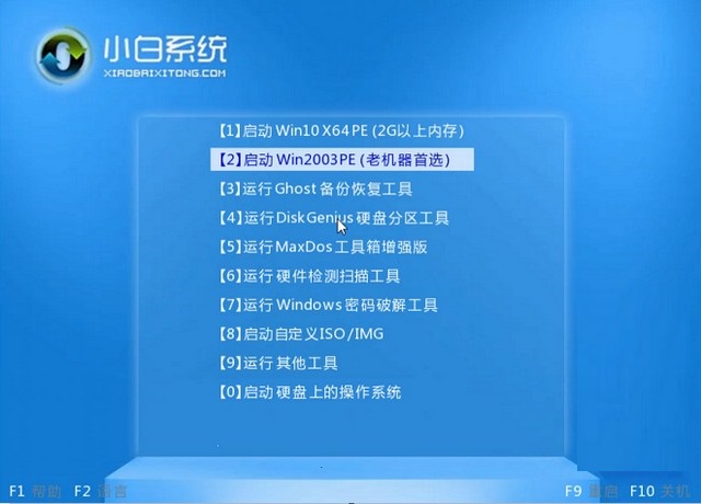 7、然后就到了PE選擇界面,選擇“02 ”點擊回車進入PE桌面。