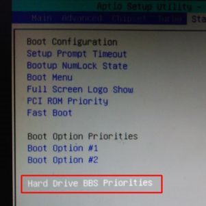 5、如果是以下界面,按→方向鍵切換到Boot或Startup,選擇Hard Drive BBS Priorities回車;
