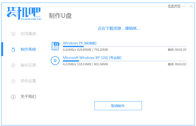 2、選擇系統,下載安裝資源,等待啟動U盤制作完成。