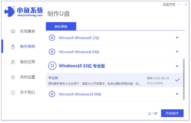 2、選擇需要安裝win10系統開始制作啟動盤了。