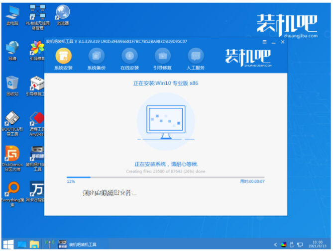5、雙擊打開裝機吧裝機工具,選擇win10系統點擊安裝到電腦c盤上。