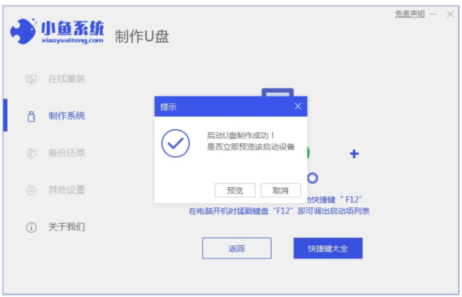 3、耐心等待提示制作成功之后,快速預覽電腦主板的啟動快捷鍵,然后拔掉u盤退出。