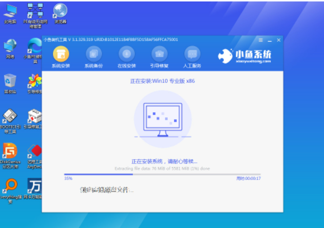 2、來到pe后打開小魚裝機工具,選擇系統點擊安裝。
