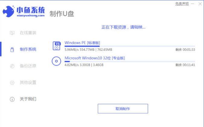 1、可以先找來一臺能用的電腦,然后自行搜索下載安裝小魚一鍵重裝系統工具,插入空白u盤,打開軟件進入制作系統模式。