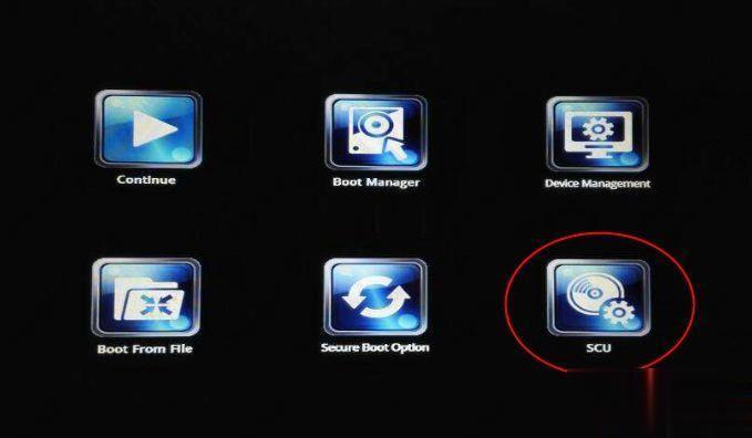 1、神舟戰神在開機過程中也可以按ESC調出這個界面,然后選擇SCU按回車;