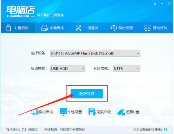 軟件版本:電腦店u盤啟動盤制作工具7.5&小白一鍵重裝系統工具2290