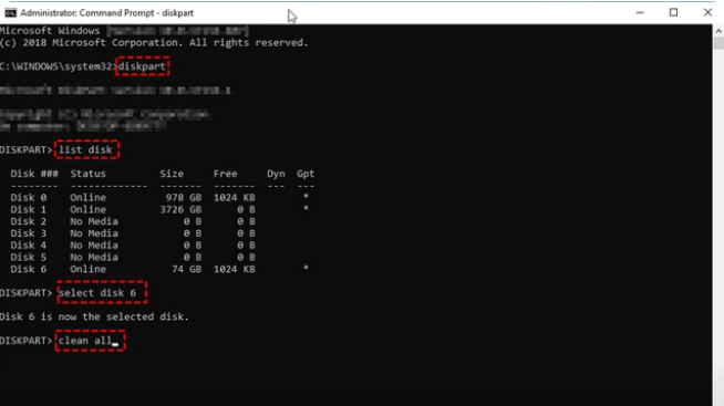方法三:通過 Diskpart CMD 將啟動盤還原成普通u盤(前兩種方法不行的話可使用這個)