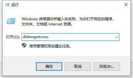 1、使用Windows + R熱鍵打開運行,輸入“diskmgmt.msc”回車打開磁盤管理窗口。