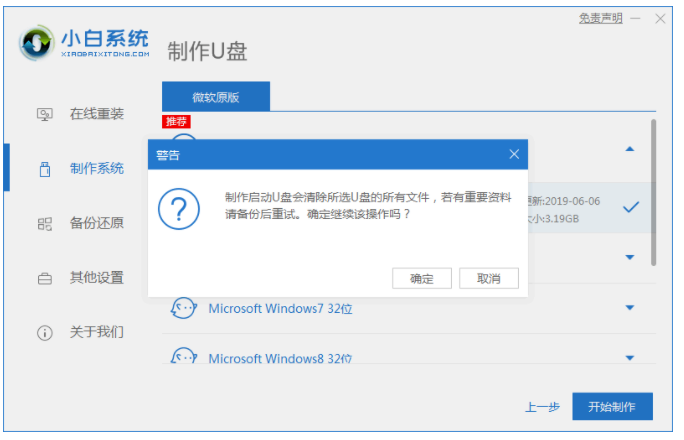 2、選擇需要安裝的windows7系統之后,點擊開始制作。